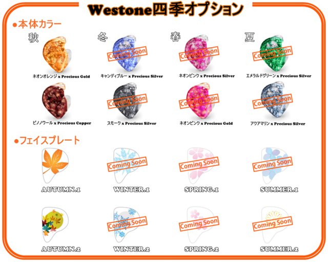 テックウインドは、同社が取り扱うWestoneカスタムIEMの有償デザインオプションとして、新たに日本の四季をモチーフにした「四季デザイン」の本体カラー/フェイスプレートを発表。第1弾となる「秋編」を、9月7日〜12月1日の期間限定で発売する。