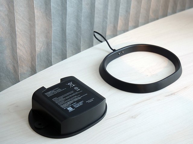 家庭内で使用する際は、リング状のチャージャーに置いておくと充電される。フル充電時での駆動時間は、Wi-FiとBluetoothともに約10時間。