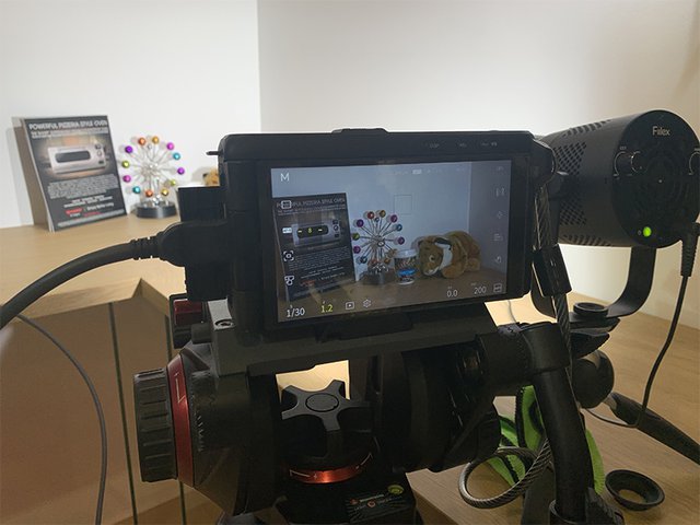 また、来春発売予定の小型8Kカムコーダーによるシューティングスペースも設置され、撮影した8K映像がHDMI経由でディスプレイに映し出されている。