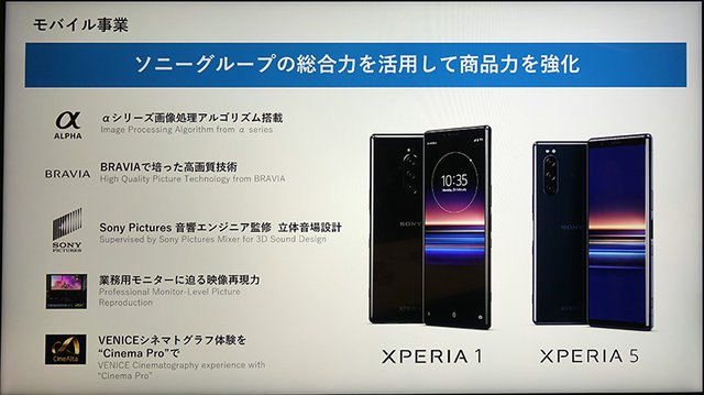 そんなソニーグループ内のシナジーの好例が、Xperia 1および今回の新製品であるXperia 5だ。「エレクトロニクスの技術だけでなく、ソニー・ピクチャーズの音響技術やシネマの技術も入っている。SPEにいるクリエーターの意見を取り入れ、プロでも耐えられる音質画質を目指した商品だ」と語る。