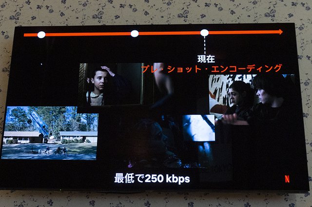 2015年以前は全てのコンテンツを画一的にエンコードしていたが、2015年からはタイトルの特性に合わせて実施するように。現在はさらに細分化され、ショットごとにエンコーディングを行う「プレ・ショット・エンコーディング」を採用しており、最低250kbpsまで抑えられるようになったという。