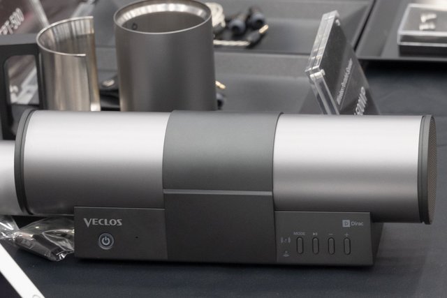 サーモスは、VECLOSブランドから魔法びんの構造を応用したヘッドホン/イヤホン、スピーカーを出展。新製品となるワイヤレスポータブルスピーカー「SPW-500WP」は、いよいよ今月上旬から発売開始予定。ノートパソコンやタブレットの背面に設置することができ、左右分割構造のスピーカーボックスやパッシブラジエーター、デジタル補正技術により、立体感と低域の迫力に優れた音質を再現する。