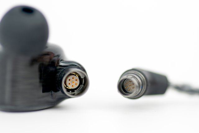 付属ケーブルは4N OFCに銀メッキを施した導体を採用。ケーブルの途中には、ドライバーで回すことで低域の量を左右それぞれ調節できる低域調節機構も搭載。プラグは2.5mm 4極端子を採用し、2.5mmから3.5mmステレオミニ端子への変換ケーブルも同梱する。