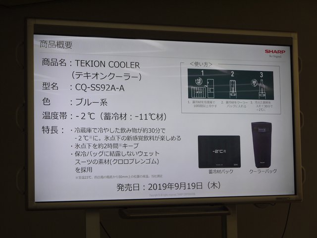TEKION LABは2017年にクラウドファンディングサービス「Makuake」にて、−2℃の日本酒「冬単衣」を楽しむ保冷バッグ×日本酒プロジェクトを発信、開始1ヶ月を待たずに目標であった3,000本を達成。この成功事例からさらなる展開を図り、社内ベンチャーでスタートした取り組みがこのほどシャープブランドの第一弾「TEKION COOLER」として商品化された。