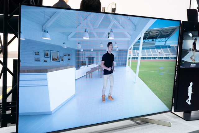 VRに関連する技術の展示は多く、このほかにも小型軽量センサーを6ヶ所に装着するだけでモーションキャプチャーが可能な技術をデモ。腕や足首などに装着すれば、こちらもディープラーニングを活用し、関節位置を割り出すことが可能だ。また複数のカメラを用いて空間を撮りこみ再現する「Volumetric Capture」技術では、スマホを使用してARでのダンスシーンを様々な角度から鑑賞できた。