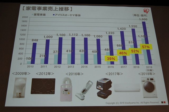 昨年、大山晃弘氏が代表取締役社長に就任し、中期経営計画で「2022年アイリスグループ売上高1兆円」の目標が掲げられた。海外でのグルーバル展開を加速すると同時に、国内においては、「B to B事業の拡大」「ネット通販の拡大」と並び、「家電事業の拡大」を三本柱のひとつに位置づける。