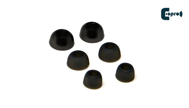 イヤーチップにはePro audio「Horn-Shaped Tips」を付属。音波をより効率的に外耳道に送れるという音響変換理論に基づいた、独自のホーン形状ノズルを採用した完全ワイヤレスイヤホン用イヤーチップで、音質への寄与だけでなく、耳から落ちにくい点も優位だという。S/M/Lの各サイズを1セット同梱する。