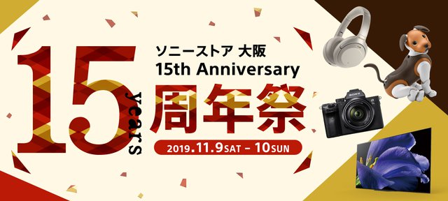 ソニーストア大阪は、今年11月9日にオープン15周年を迎える。これを記念し、11月9日(土)・10日(日)に「ソニーストア大阪 15周年祭」を開催する。