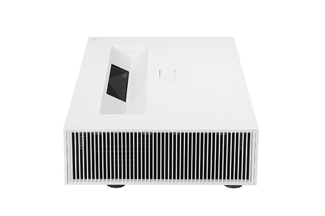 4K(3,840×2,160)映像を、壁から約10cmの距離で100インチ、約18cmで120インチとわずかな距離で大画面投影できる超短焦点プロジェクター。プロジェクターとして最高クラスのThrow Ratio 0.19を実現し、独自のコンパクト設計とすることで省スペースも両立した。