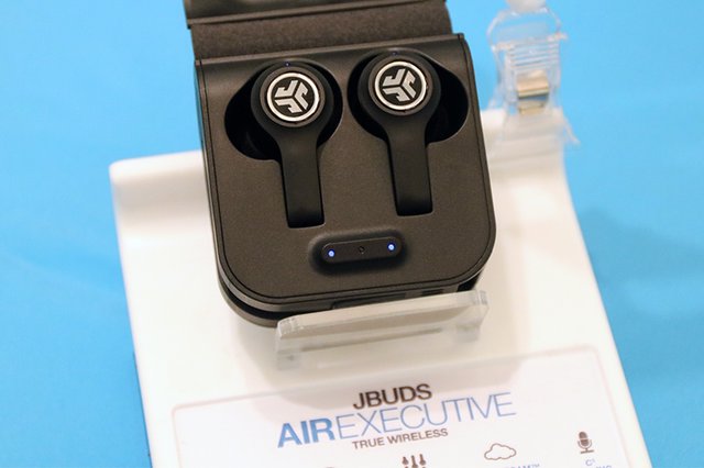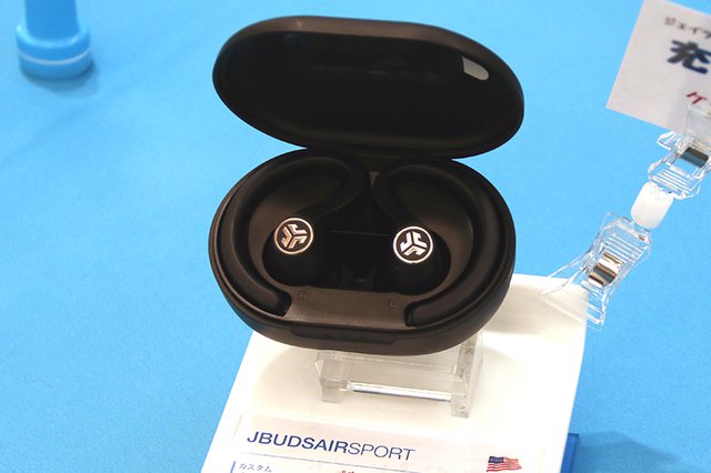 完全ワイヤレスイヤホン「JBUDS AIR」「JBUDS AIREXECUTIVE」「JBUDS AIRSPORT」の3モデルを展示。最上位モデル「JBUDS AIREXECUTIVE」は3種類のEQで音質を変えられる点が特徴だ。また、ポタフェス大阪で参考出展されたオンイヤー型Bluetoothヘッドホン「REWIND」も展示されており、こちらも11月14日から発売予定とのこと。