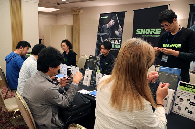 シュアのブースでは、人気イヤホン「SEシリーズ」の試聴が今回も盛況。SEシリーズはラインナップに、最新のプレミアムワイヤレスケーブル「RMCE-BT2」を標準付属とした新パッケージを追加。ワイヤレスでもSEシリーズの性能を発揮できるセットとして、好評を博している。ブースでアンケートに回答するとオリジナルグッズが当たる抽選会も開催されている。