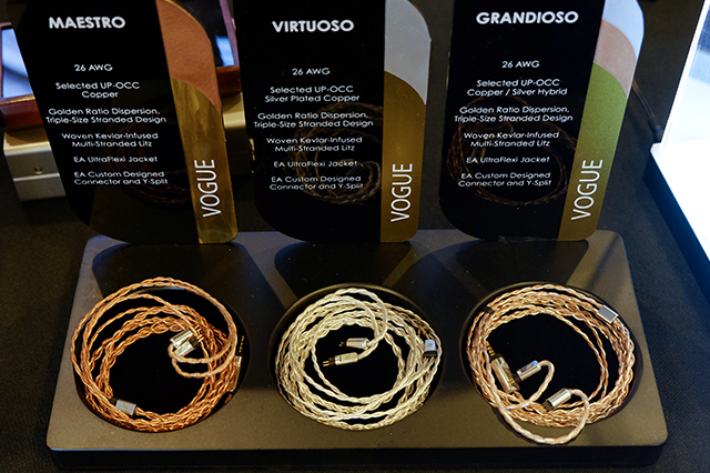Olasonicは11月下旬からの発売を予定するタマゴ型のBluetoothスピーカー「IA-E55BT」や、既存システムのワイヤレス化が実現できるBluetoothレシーバー「NA-BTR1」など、同社ならではの小型コンポーネントをラインナップ。Effect Audioは、今月中の発売予定となるリケーブル「VOGUE」シリーズより「MAESTRO」(1万円)、「GRANDIOSO」(1.5万円)、「VIRTUOSO」(2万円)などを展示していた。