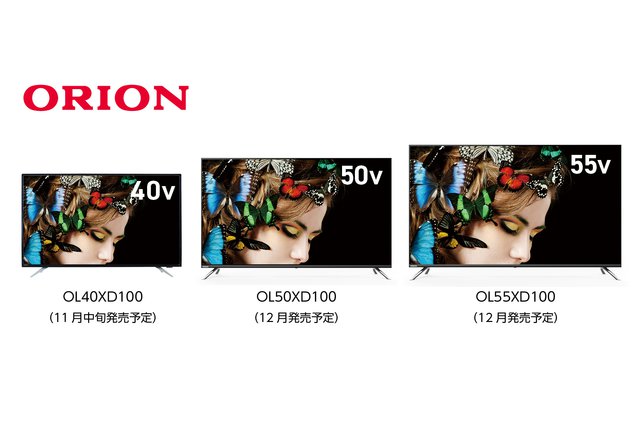 ドウシシャはORIONブランドより、“XDシリーズ” の4Kチューナー内蔵液晶テレビ3機種「OL40XD100(40型)」「OL50XD100(50型)」「OL55XD100(55型)」を発売する。OL40XD100は11月中旬、OL50XD100/OL55XD100は12月の発売を予定する。