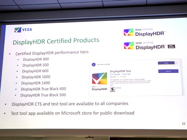 ジム氏は、Dispay HDR認証制度はVESAに加盟している企業以外にもオープンになっていると紹介。テストツールAppをMicrosoft Storeからダウンロード可能なことなども紹介した。