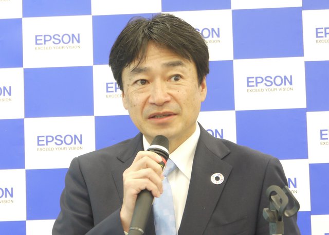 まず「エプソンのスマートチャージ」の歩みに触れた鈴村氏。「オフィスプリンター、複合機への最後発での参入で、環境性能と高速高画質印刷を武器に活動してきた。フィニッシャーの性能や、中低速機のボリュームゾーン展開に課題もあったが、今回の製品で解決を果たした」と自負する。