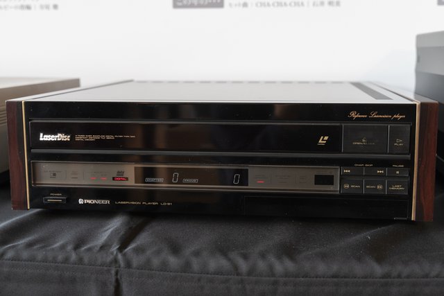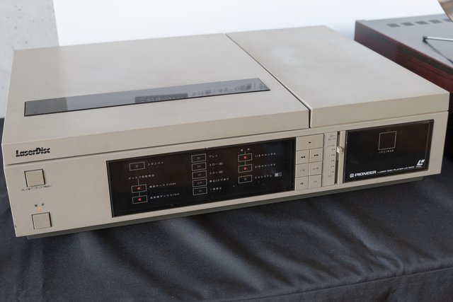パイオニアブランドの光ディスクプレーヤーの元祖とも言うべきは、1981年発売の「LD-1000」から続くレーザーディスク(LD)プレーヤーだ。会場では、記念すべき初の国産LDプレーヤーでもあるLD-1000、1986年発売の当時の最高級モデル「LD-S1」、ハイビジョン映像を収録したHi-Vision LDにも対応する1989年発売のフラグシップモデル「HLD-X0」の3機種が展示されている。