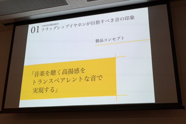 細尾氏は、A8000のコンセプトについて「音楽を聴く高揚感をトランスペアレントな音で実現する」ことと説明する。