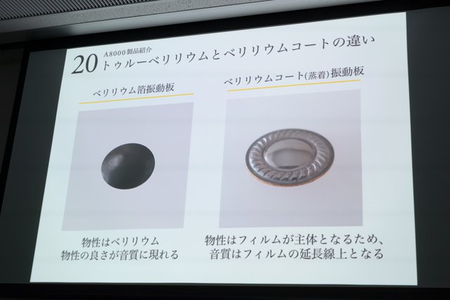 細尾氏によれば、同社は以前ODM事業において、素材メーカーと共同でヘッドホン向けベリリウム振動板の開発研究を行っていた実績があり、その際に得た知見がトゥルーベリリウム振動板の開発に活かされたのだという。同じくベリリウム加工のノウハウを積んだ素材メーカー側も、ヘッドホン/イヤホン向けに技術供給を行っているとのことで、細尾氏は「これからは他にもトゥルーベリリウム振動板を採用するメーカーが増えてくるのではないか」と述べていた。
