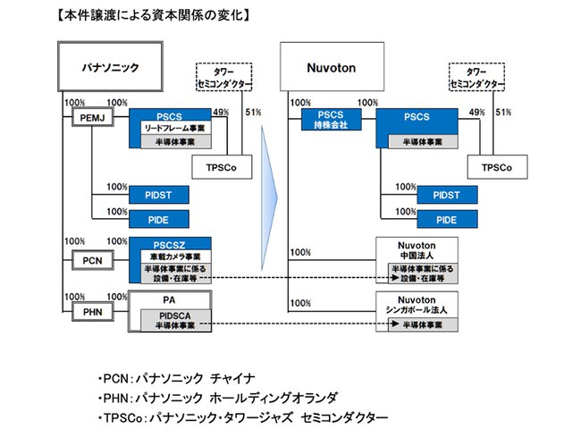 Nuvotonへの事業譲渡前に、パナソニック内で半導体事業の再編を実施。その後、再編後の持株会社の全株式をNuvotonに譲渡。そして半導体の開発・販売事業を担当する社内カンパニー「パナソニック デバイスセミコンダクターアジア」の事業を、Nuvotonのシンガポール法人に譲渡。パナソニック セミコンダクター蘇州有限会社の半導体事業に係る設備・在庫等をNuvotonの中国法人に譲渡する。