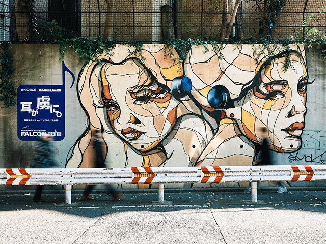 Noble Audio、都内のストリートアートが完全ワイヤレス「FALCON」を装着するプロモーション