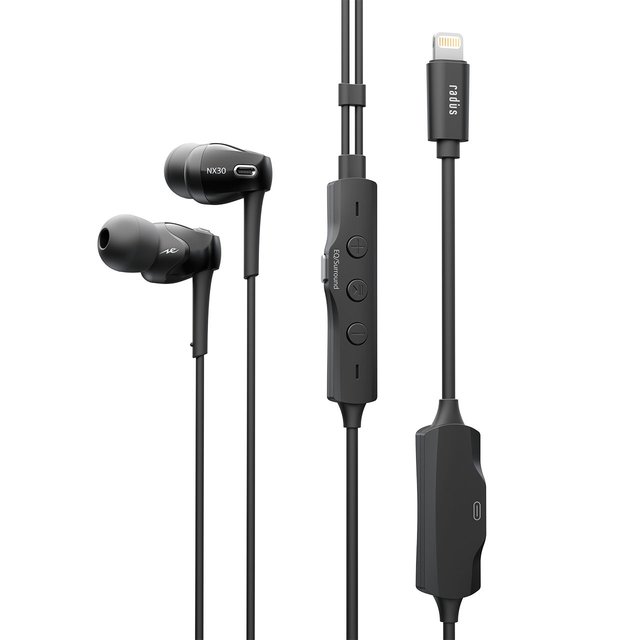 ラディウスは、充電ポートを搭載したLightning対応イヤホン「HP-NX30L」とリケーブル「HC-M200L」を12月14日より発売する。価格はオープンだが、それぞれHP-NX30Lは税抜14,980円前後、HC-M200Lは税抜13,980円前後での実売が予想される。