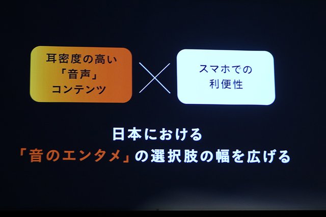 音声メディアについては、「耳密度=集中して聴きたくなる情報量の多いリッチなコンテンツ」の提供を目指すとし、プロが作るストック型コンテンツの配信を予定。ニッポン放送と協業で、動画メディアと同じく「スマホ上で楽しむ短尺のコンテンツ」を展開するという。「Podcastのような形だが、現時点ではこのジャンルで覇者となる強力なものがまだない市場。そこに挑戦していきたい」とした。