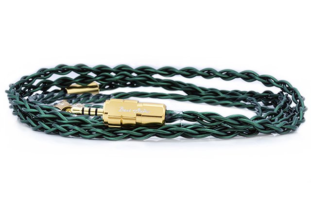 ケーブル長は120cm、イヤホン端子はMMCXとCustom 2pinを用意する。ジャケットはダークエメラルド、プラグや分岐パーツなどにはゴールドカラーを用いて、高級感のあるデザインに仕上げたとのこと。