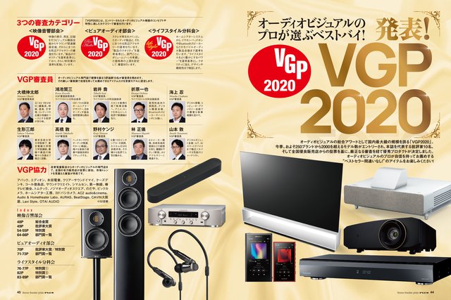 総力特集では「VGP2020」の結果を大公開。WEBやフリーマガジンでは読めなかった、各審査員の投票結果まで掲載している。商品ジャンルも幅広く、テレビやレコーダーをはじめ、プロジェクター、スピーカー、AVアンプ、そしてヘッドホンやサウンドバー、ミニコンポなど、あなたの気になる製品の評価を調べるのに是非参考にしてほしい。