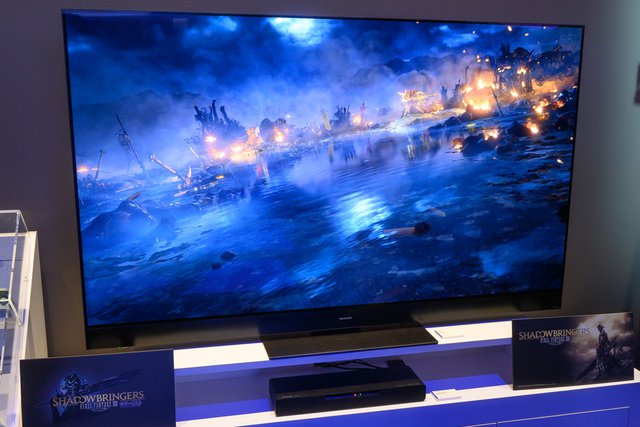 また、今回発表された4K有機ELテレビの新フラグシップモデル「TX-65/55HZ2000」は、ソファーなどを配置しリビングスペースを模した空間に登場。ゲーミングスピーカーという位置づけのサウンドバー「SC-HTB01」と組み合わせてあり、流れている映像には「ファイナルファンタジーXIV」を使用するなど、ゲーム用途もアピールされた。