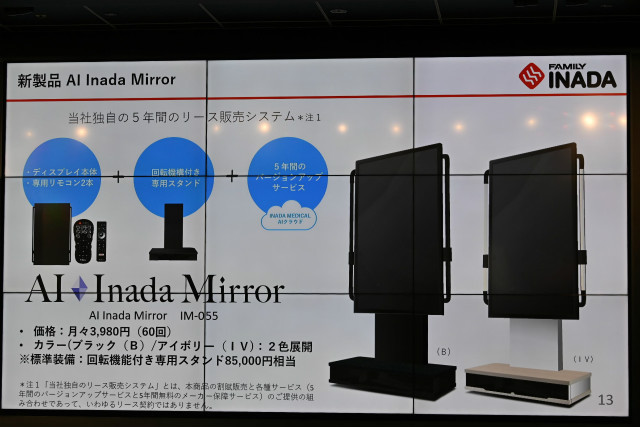 また稲田氏は、「近年はスマホの普及により便利になったが、同時に一人で楽しむコンテンツが増え、孤独化が進むのではないかと心配している。スマホでは自分しか楽しめないものを、『AI.Inada.Mirror』で家族で楽しめるものにしていきたい」と、マッサージチェア専門メーカーの同社がまったく新しいジャンルの製品を手掛けたきっかけについても述べた。