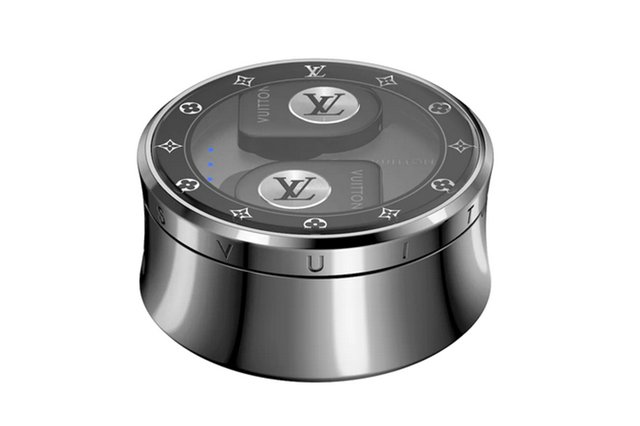 充電ケースはステンレス製、防水性能はIPX4。ルイ・ヴィトンのスマートウォッチ「Tambour Horizonコネクテッドウォッチ」にインスパイアされたデザインを採用しており、ブラックにはガンメタル、ホワイト/ピンクにはシルバー、レッド/イエローはPVDコーティングしたマットブラックのケースが付属する。いずれもサファイアガラスの蓋の周囲、ケース背面にはモノグラム・フラワー柄が刻印される。