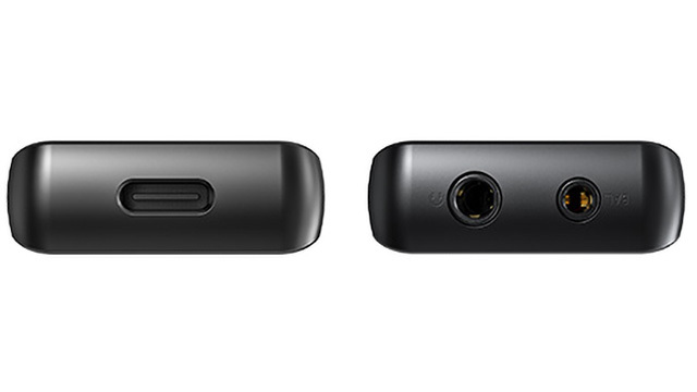 ヘッドホン出力は3.5mmステレオミニ/2.5mmバランスの2系統を搭載。USB端子はType-Cを採用。連続再生時間は最長約9時間(3.5mmステレオミニ出力時)で、フル充電は約1.5時間で可能。