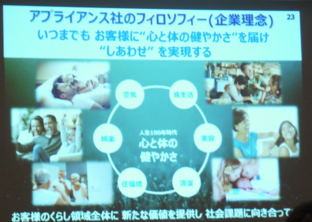 アプライアンス社の企業理念「いつまでもお客様に “心と体の健やかさ” を届け “しあわせ” を実現する」に触れて、「お客様のくらしに新たな価値を提供し、社会課題に向き合っていく。たとえばご高齢の方にも使いやすい “Jコンセプト” など、専門店様とご一緒に社会課題に向き合う商品をご提供し、こうしたかたちでお客様の幸せを実現していく」と力を込めた。