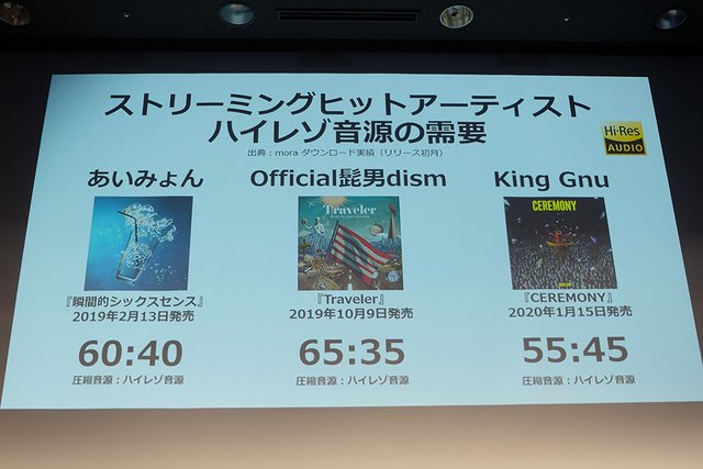 またハイレゾのニーズについては、ストリーミング配信で人気のある、あいみょん、Official髭男dism、King Gnuのダウンロード購入の圧縮音源/ハイレゾ音源の割合として、最低35%がハイレゾを選択していることから、一定の需要があると見込む。