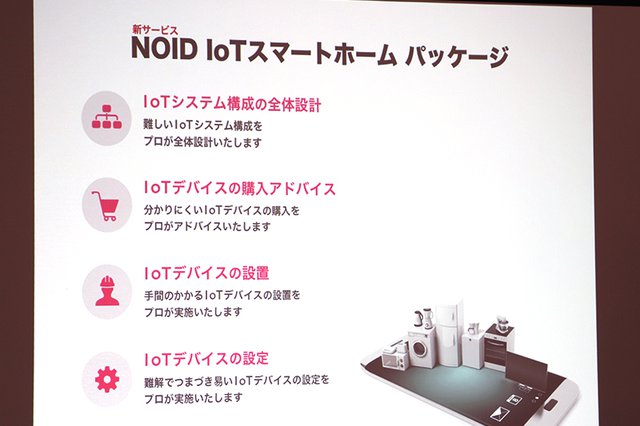 パートナー企業はNOID IoT クラウドを利用することで、システム開発や改修にかかるコストと納期を大幅削減でき、家電のVUI・IoT対応を行うことができる。さらに消費者向けに、住宅にIoTを導入したい方々のサポート支援をする代行サービスも展開予定。いずれも2020年春のスタートを目指している。