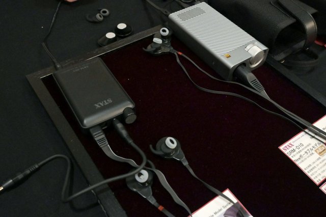 STAXは、専用アクセサリー「CES-A1」を装着した同社のポータブルイヤースピーカー(静電型イヤホン)の展示・試聴を実施。同社のイヤースピーカーを、可能なかぎり音質を犠牲にせず密閉化し遮音性を高める「CES-A1」の効果と、それによって屋外でも楽しめるようになったイヤースピーカーの音質をアピールしていた。