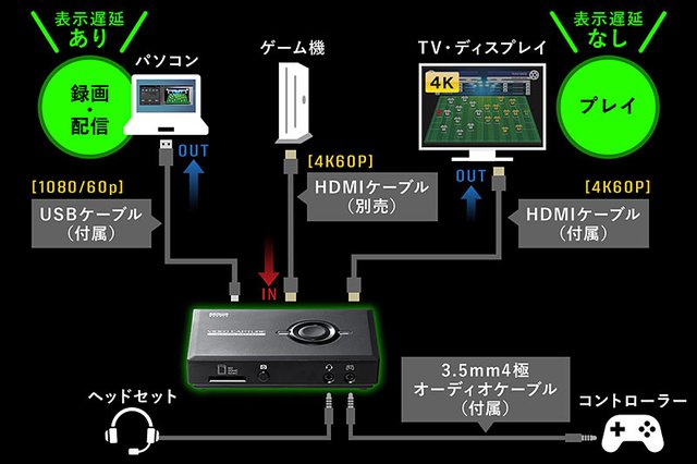 サンワサプライ、4K画質でゲームしながら配信できるキャプチャー機「400-MEDI032」