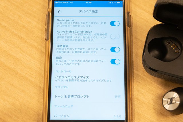 続いて、右イヤホンのタッチパネルを3回タッチしてノイズキャンセリングをオンにしてみると、ゴーッというような低音が消えてより静かに。この時はじめて、不快な低音がこれまであったのだと認識する。