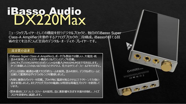アナログアンプに、大電流/低歪みを実現する独自のディスクリート構成フルバランスアンプ「iBasso Super Class-A Amplifier」を搭載。DX220同様、DACチップに「ES9028 PRO」を用いており、そのポテンシャルを最大限引き出すとしている。なお、純A級ではないとのこと。