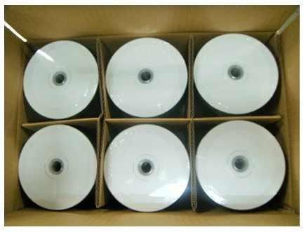 製品を納める段ボールもより頑丈で耐久性に優れたものを採用することはもちろん、カートン内の仕切りには、耐久性に優れた一体成型の半分折方式という特別仕様の仕切り板が採用される。100枚バルクの箱詰めの際にも、通常は直立に収めるが、Ritek Pro“CG”では、ディスクがより変形しにくい水平式を採用。That's 業務用100枚バルクの梱包にも採用されていたものだ。さらに、通い箱でリサイクル可能とし、環境面にも配慮する。