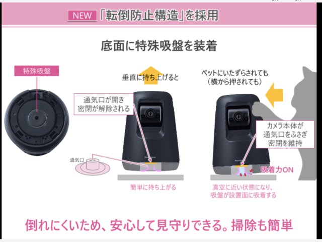 パナソニック、スマホからペットを高画質に見守る「HDペットカメラ」。転倒防止機能を新搭載