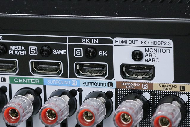 映像フォーマットとしては、8K60p/4K120pやHDR+10/Dynamic HDR、QMS/DSCに新たに対応。また、映像信号を8K60pなどにアップスケーリングして出力することも可能だという。また前モデルに引き続き、HDR10/HLG/Dolby VisionやeARCにも対応する。サラウンドフォーマットとしては、従来のDolby AtmosとDTS:Xに加え、4K/8K放送で採用されるMPEG4 AAC 5.1にも対応する。