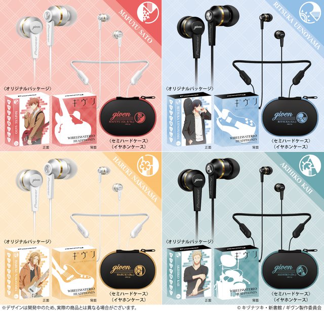 作中にでてくるバンド「ギヴン」のそれぞれのメンバーのモデルになっており、ベースモデルが白モデルは「佐藤真冬」、「中山春樹」、黒モデルは「上ノ山立夏」「梶秋彦」の4種類展開。Lハウジングにはバンド名を、Rハウジングには各メンバーの象徴となるマークをレーザー彫刻し、同作品の世界観を表現している。