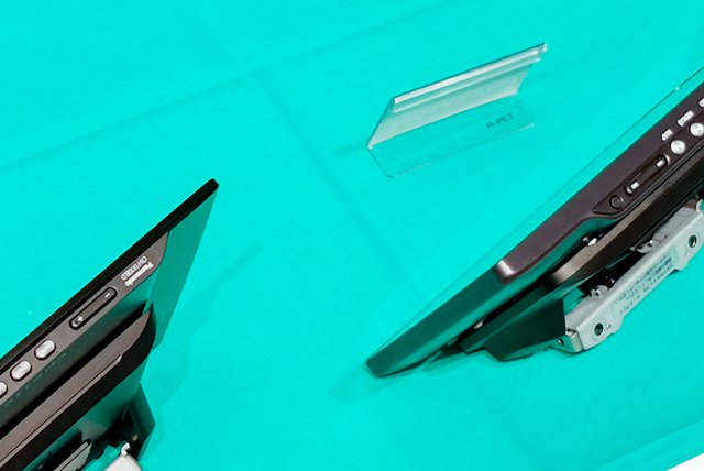 またディスプレイの厚さを約4.7mmに、重量は従来比約30%減の約0.7kgと軽量化しながらも、外装フレームに軽量かつ高剛性なマグネシウムダイカストを採用、新シャーシユニット開発によるディスプレイ保持部の剛性の向上などで、耐振動性は強化している。そして家庭用テレビのような狭額縁設計により、車内インテリアとしての上質感も高めた。