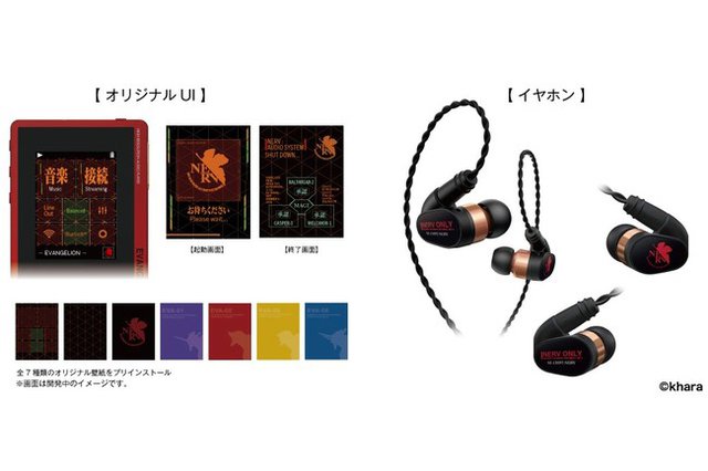 UIもオリジナルのエヴァ仕様なほか、7種類の壁紙と「残酷な天使のテーゼ(Director's Edit. Version)NEON GENESIS EVANGELION 【2013 HR Remaster Ver.】」など5曲のハイレゾ音源も内蔵。同梱されるハイレゾ対応イヤホン「SE-CH9T」も両ハウジングにマークなどをあしらったオリジナルアルミプレート仕様となる。