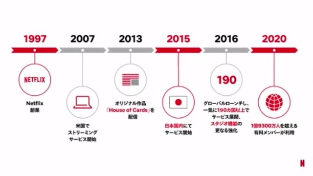 同サービスは1997年にアメリカで創業し、当初はDVD配送サービスを行っていた。2007年に現在のようなストリーミング配信を開始。日本には2015年9月1日に上陸した。そして、いまでは全世界190カ国以上で、1億9,300万人以上のユーザーがNetflixを利用している。