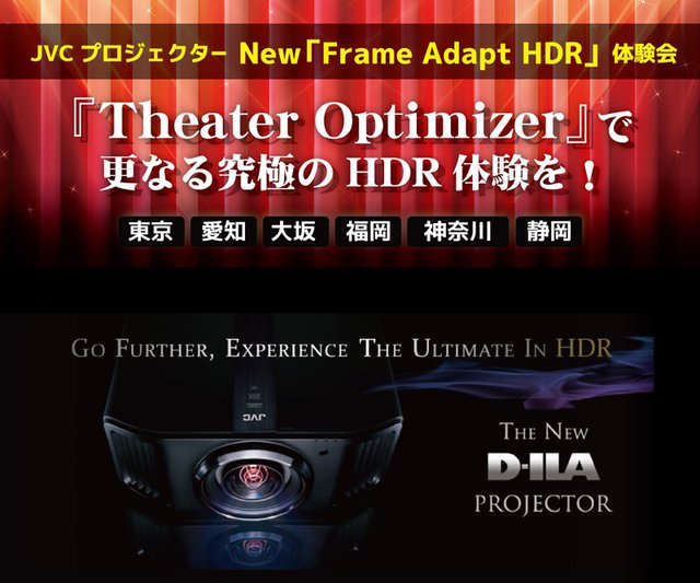 アバックは、JVCの8K/4K D-ILAプロジェクターの最新機能を先行体験できる「JVC New Frame Adapt HDR先行体験会」を、新宿本店はじめ全国各店舗にて9月25日から順次開催する。