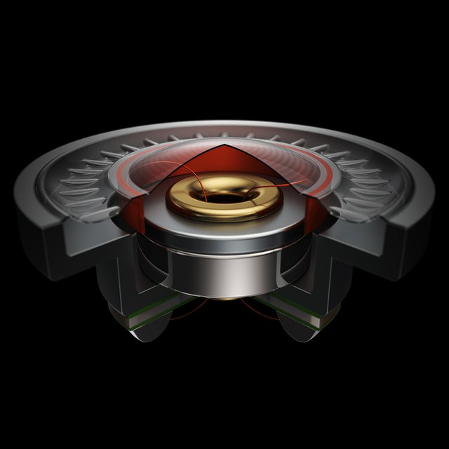 ボイスコイルには通常の銅線に比べ軽量なSPCCAW(SP-銅クラッドアルミ線)を採用。これにより、振動板の高いレスポンスを実現し、高音域の優れた伸びと、歯切れのよい低音域再生を可能にした。