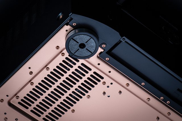 筐体には同社8000番台のAVアンプやHi-Fiアンプと同様の1mm厚銅メッキシャーシを採用。インシュレーターはリブを多数入れて剛性を高めた高密度樹脂で、下に貼っているフェルトも音質で選んだ高品位なものだという。