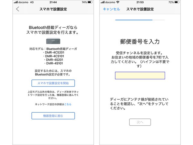 新機能「スマホで設置設定」によって、Bluetoothを介して、スマホで設置設定を行うことが可能。本体にアンテナ線と電源を接続しておけば、スマホやタブレットにインストールした「どこでもディーガ」アプリでディーガ本体のネットワーク設定やチャンネル受信設定などの設置設定をおこなうことができる。これによって、テレビ画面がなくても、録画予約や再生はもちろんのこと、写真や動画・音楽もためて楽しめる、自分専用レコーダーとして活用できるようになる。